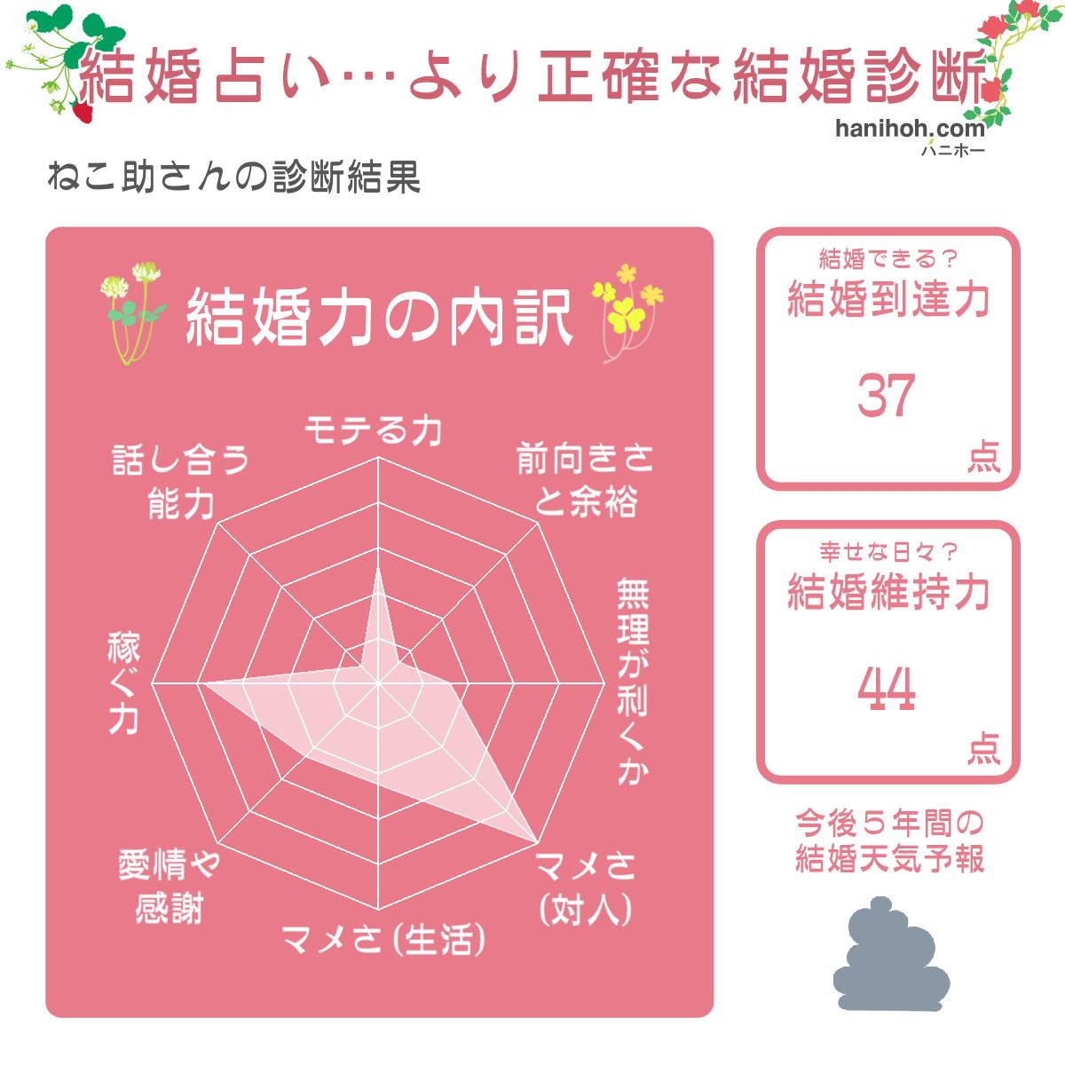 もともと結婚力のポテンシャルは低めです。魅力の向上がここのところされてこなかったことも響いています。結婚に関して言えば、これでも今がピークなのですが、寒さに凍える日々になりそうです。